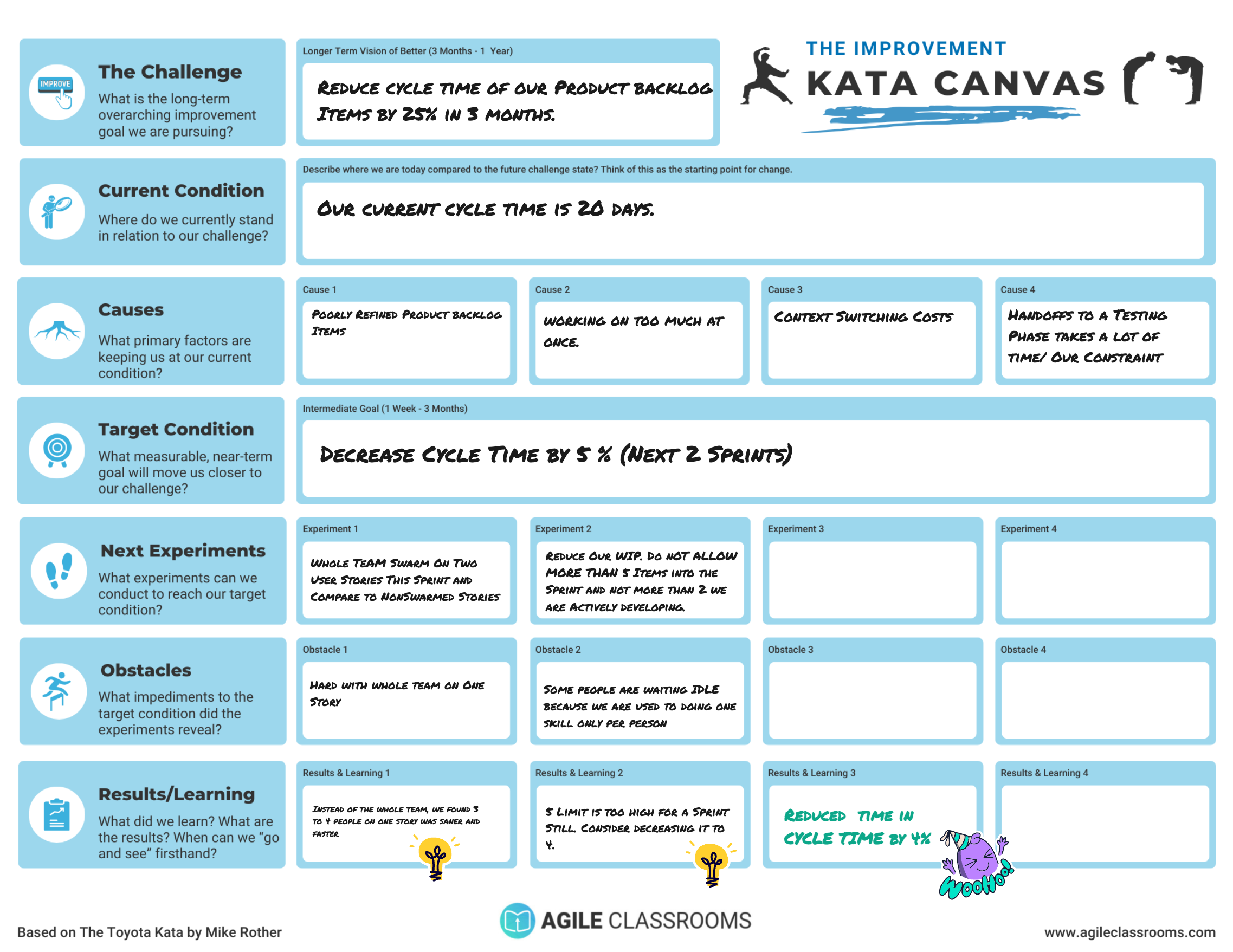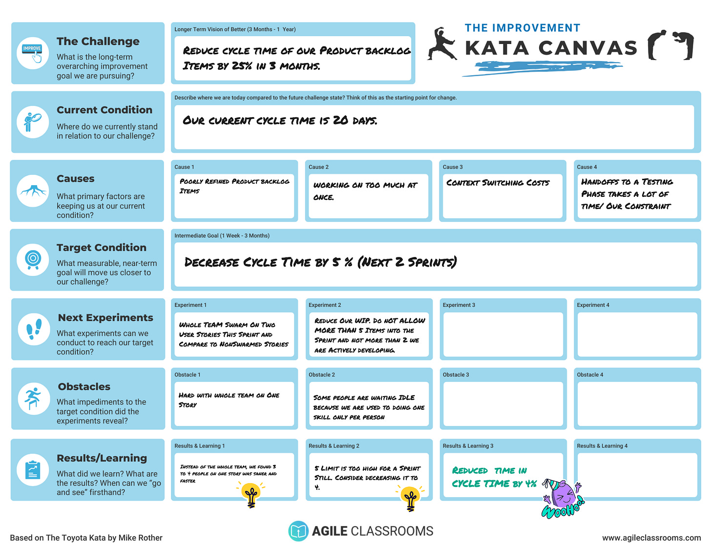 All along, they updated their Improvement Kata Canvas to make their progress visible, seen below: